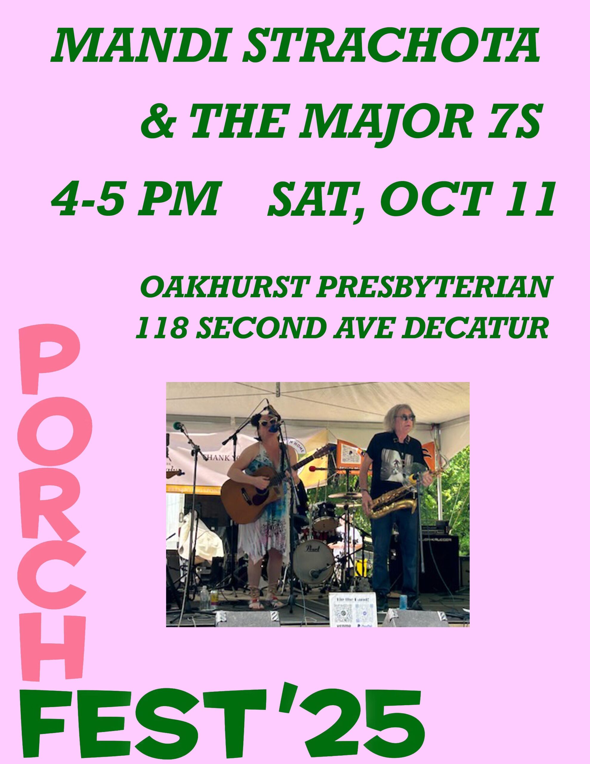 Oakhurst Porchfest is back! We are blessed to be joining up once again with the Oakhurst Presbyterian Church at 118 Second Avenue in Decatur. Our time slot is from 4-5 but I’d like to remind everyone there will be music on porches all around Oakhurst starting at noon and not ending until 6pm, so get there early, park your car somewhere and wander around! There will be some food available for a small donation (the church lights up the grill, y’all) but other food and beverages are encouraged for you to bring on your own. This is a family friendly, dog friendly event. Bring your wagon and get ready to boogie! For details about other performers visit https://www.oakhurstporchfest.org/map-and-schedule to find a digital map and downloadable program. Join my band afterwards at Winston’s in Marietta from 8-11.